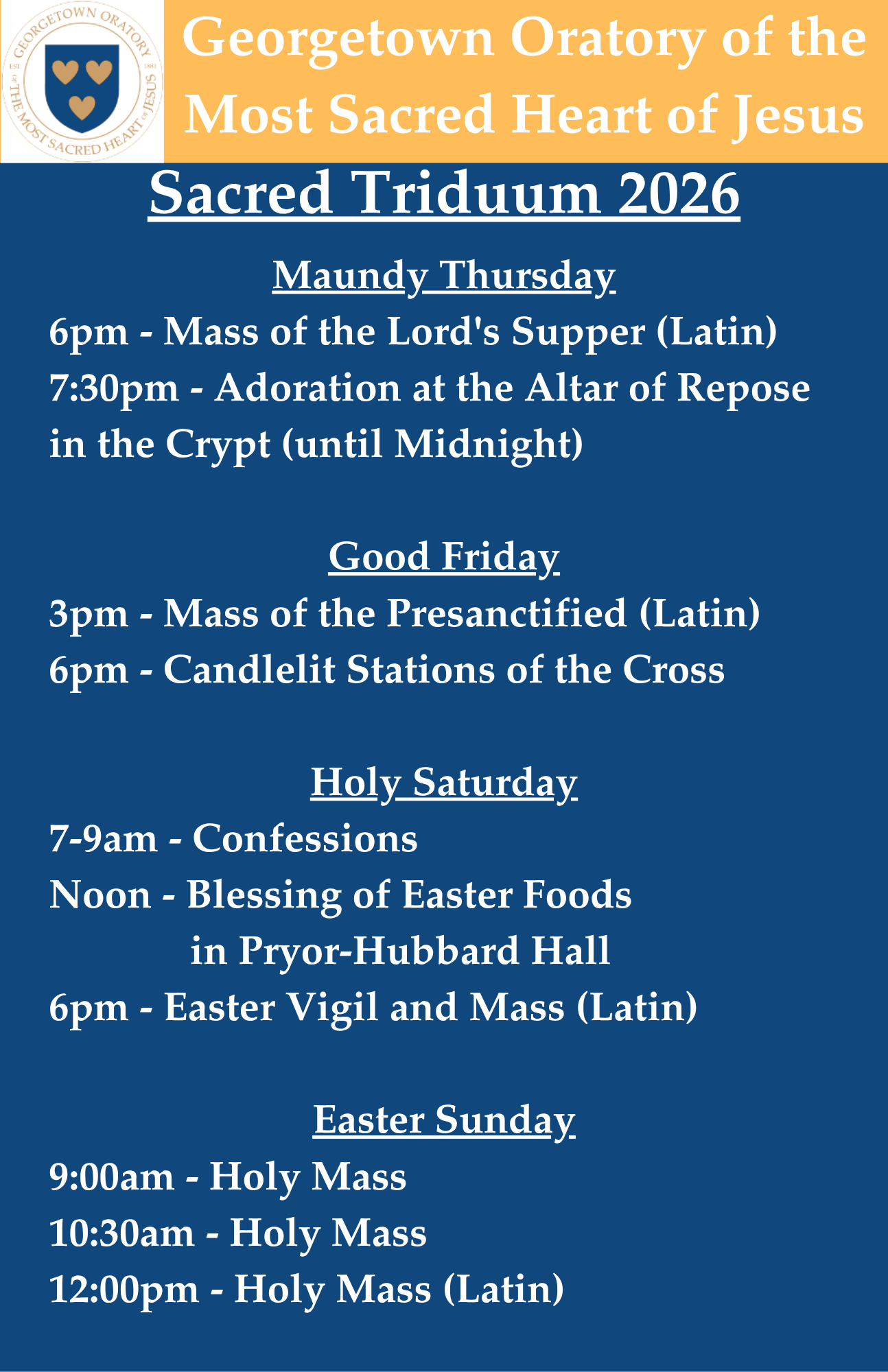 The Georgetown Oratory of the most sacred heart of Jesus was established by bishop caggiano following the creation of sacred heart - st. Patrick parish. the oratory community regularly gathers and is responsible for sacred heart church, a building whose history goes back to the 1880s.